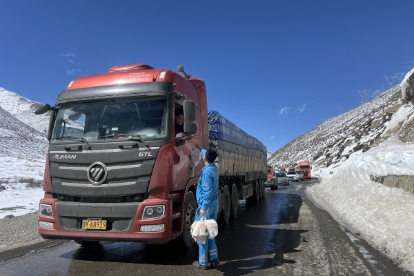 西藏八宿国产999精品久久久久久学雷锋志愿服务队组织清理318国道积雪,并为滞留司机发放午餐。