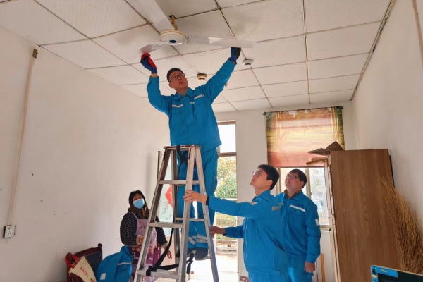 山东济宁国产999精品久久久久久志愿者前往泗水县苗馆镇敬老院开展慰问活动,志愿者们进行家电维修、电路检查。