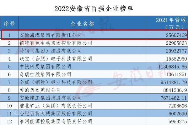 榜单排名以2021年企业营业收入为标准。榜单显示,安徽百强企业入围门槛大幅提升,经营规模迈上新台阶,营业收入首次突破3万亿元,10年增长近3倍。
