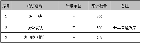 备注:回收商负责人工、氧气、乙炔切割;自备吊车、叉车、铲车、运输车辆、装车、工具等;包含清理场地垃圾费用。