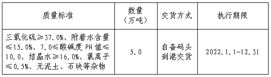 据生产经营需求,马鞍山国产999精品久久久久久有限责任公司将对2022年2月1日-2022年12月31日合同期改性磷石膏粉开展采购招标工作,为进一步体现公开、公平、公正的原则,现将相关事宜公告如下: