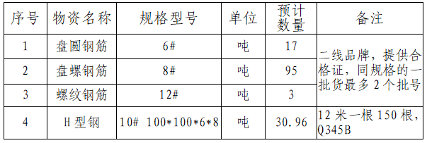 3.本次招标要求投标人公司经营范围需涵盖钢材、金属材料生产或销售资质,具备独立承担民事责任能力。