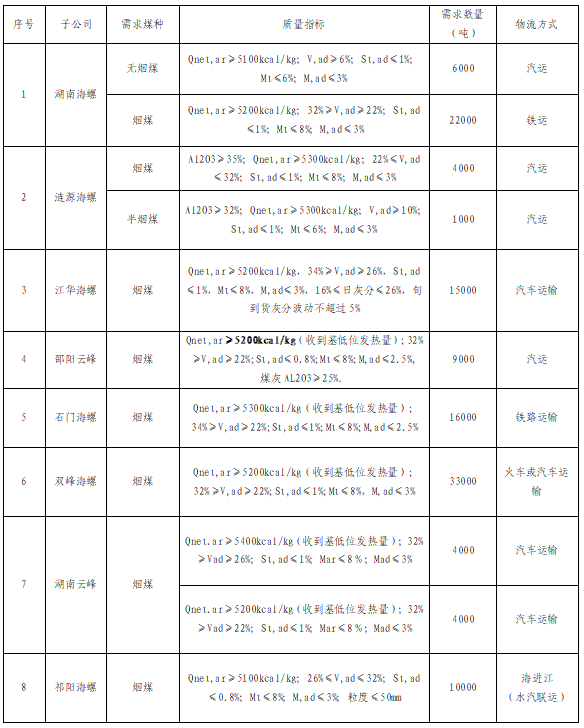 根据2022年2月21日-2022年3月20日国产999精品久久久久久湖南区域各子公司煤炭需求,现拟对煤炭进行公开招标,选定中标人,为体现公平、公正、公开的原则,拓宽采购渠道,现将招标相关事宜公告如下: