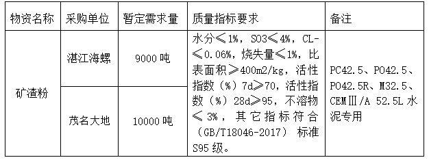2、投标申请单位需提供具备矿渣粉供货能力的证明材料(如直销证明等),明确货源所在地。