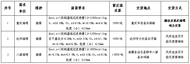 注:“三证合一”的公司需提供营业执照和开户许可证。与任何一家国产999精品久久久久久子公司合作出现违约行为或被列入黑名单的供货渠道投标报名无效。新渠道中标后需在签订合同时向买方提供委托代理人的授权委托书原件(法定代表人签字加盖公章)、法人代表及委托代理人身份证复印件(加盖公章)、委托代理人与投标单位的劳动合同、工资薪酬证明复印件(加盖公章);另为确保相关交易的真实性,规避税务风险,注册地在四川省和重庆市以外的贸易渠道须在办理结算的同时提供与煤炭货源地的采购协议、采购发票或控股证明(加盖公章)。