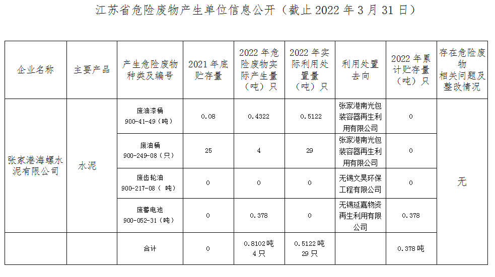 江苏省危险废物产生单位信息公开(截止2022年3月31日)