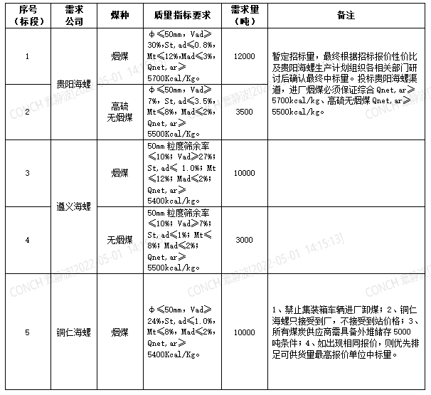 5.若2022年5月21日至2022年6月20日贵州区域煤炭招标报名单位同为2022年4月21日至2022年5月20日中标单位,中标单位在执行合同供货量在2022年5月6日24时前(销发系统进厂数量)小于合同约定量的30%的,不予以参与国产999精品久久久久久贵州区域2022年5月21日至2022年6月20日煤炭招标(仅买方原因或不可抗力因素除外,铁路在途和在站煤炭不给予纳入供货量,仅以进厂数量为准),并取消在贵州区域所有国产999精品久久久久久6个月内的投标资格。