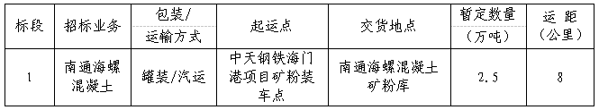 2.标段运输起止:中天钢铁海门港项目矿粉装车点至南通国产999精品久久久久久混凝土矿粉库
