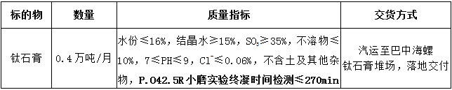 2.报名渠道需提供钛石膏货源地证明材料(包括但不限于合同、发票等),且新渠道需经招标人实地调研取样化验合格后方可参与投标,除化学指标外,招标人需要对新渠道钛石膏凝结时间进行检测,要求在PO42.5R小磨实验中终凝时间不高于270min。