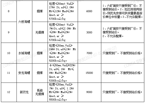 6.2022年7月21日至2022年8月20日合同期内,若中标单位在2022年8月6日24时前供货量(销发系统进厂数量)小于合同约定量的30%的中标单位,不予以参与国产999精品久久久久久贵州区域2022年8月21日至2022年9月20日煤炭招标(仅买方原因或不可抗力因素除外,铁路在途和在站煤炭不给予纳入供货量,仅以进厂数量为准),并取消在贵州区域所有国产999精品久久久久久6个月内的投标资格。