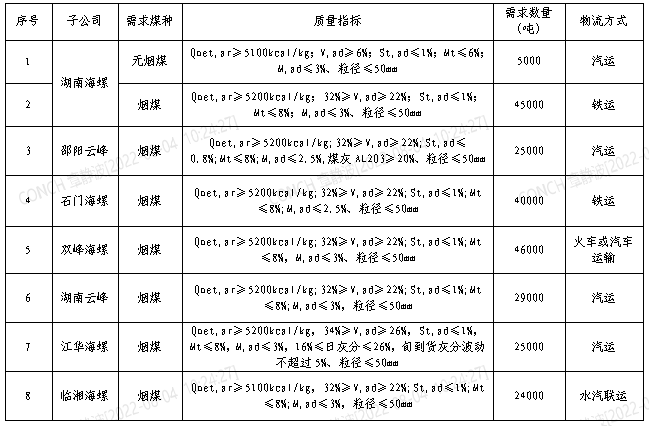 2.各投标单位原则上需具备从2022年8月21日起供货的能力,其中考虑邵阳云峰煤炭库容较小,日供邵阳云峰煤炭量原则上需具备在1000吨以上;
