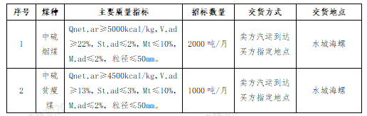 1.标的内容:中硫烟煤、中硫贫瘦煤