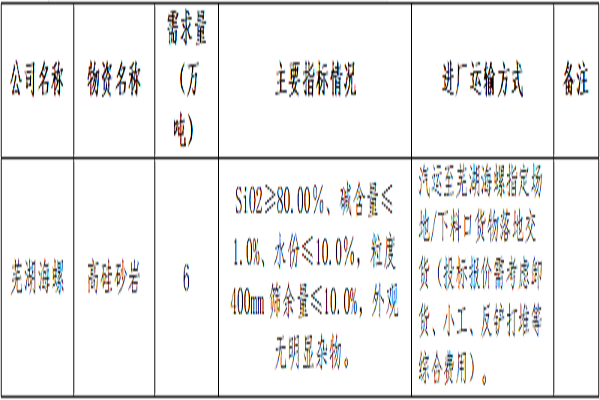 (3)运输方式为汽运进厂,且所有砂岩运输车辆必须为“国五”或以上标准的新型环保车辆。