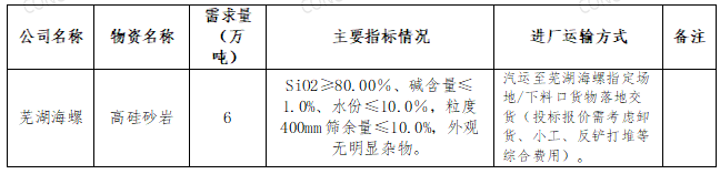 (3)运输方式为汽运进厂,且所有砂岩运输车辆必须为“国五”或以上标准的新型环保车辆。