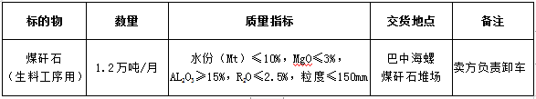 2.投标渠道必须为直供渠道,煤矿、洗煤厂或煤矿、洗煤厂的统一销售公司,拥有稳定的煤矸石资源(需提供可经核实的相关包销协议、处置协议,不接受委托书)和固定的加工设备及必要的堆存场地。招标人有权对投标材料中的真实性予以进一步核实,投标渠道须无条件予以配合。