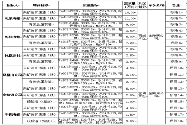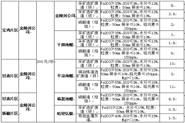 说明:其中采矿选矿废渣为原矿资源,不允许掺配含铁工业废渣,对于违约情形,按照合同约定处罚。