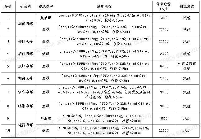 2.各投标单位原则上需具备从2022年10月21日起供货的能力,其中考虑邵阳云峰煤炭库容较小,日供邵阳云峰煤炭量原则上需具备在1000吨以上;