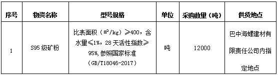为进一步提升S95级矿粉采购招标的公平、公正、公开透明性,根据巴中国产999精品久久久久久建材(商混)生产矿砂矿粉需求情况,现组织开展S95级矿粉公开招标,特将招标事宜公告如下: