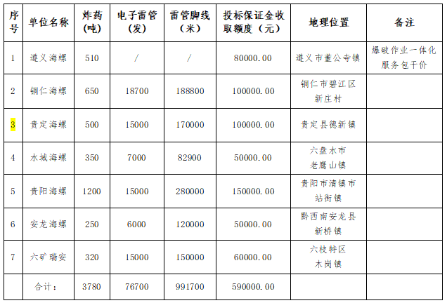贵州区域7家子公司外委爆破服务合同于2022年12月31日到期,为确保各公司外委爆破服务的连续性,按照“一区一策”采购权限划分要求,供应专业组拟开展2023年度区域外委爆破、安全监理及评估服务联合招标工作。现将相关事宜公示如下:
