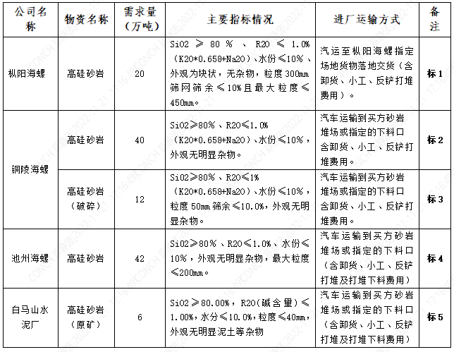 根据白马厂、池州、铜陵和枞阳国产999精品久久久久久公司实际生产需求,本着“公开、公平、公正”的原则,拟对直供高硅砂岩进行公开招标,欢迎具备条件的单位参加,现将招标相关事宜公告如下: