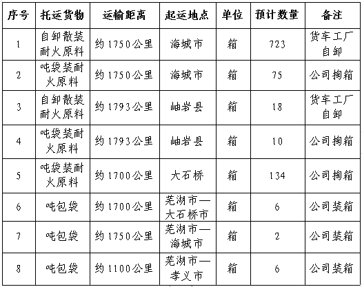 根据公司生产经营计划,为确保国内碱性耐火原材料及时、安全的运输至公司,满足生产需要;同时,规避海运季节性价格涨跌风险,降低运输成本。现本着“公开、公平、公正、透明”的原则公开招标,诚邀经营能力较好、运输资质合格、保供和服务能力较强的运输单位参加投标,现将有关事项公告如下: