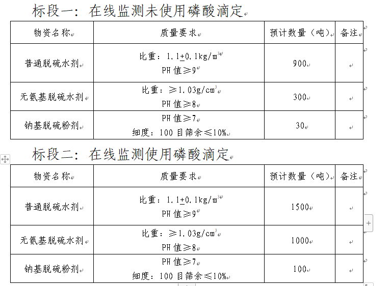 3.质量指标:满足国家化工合格品相关质量控制标准,产品对设备无腐蚀,对熟料质量和正常生产无影响。同时预计招标人将在2024年2月份开始使用在线监测磷酸滴定法,要求中标单位提前做好相关准备,届时收到招标人正式通知后马上启动。