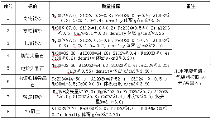 注:上述镁质原材料必须为天然矿石制品,不得使用浮选等任何提纯工艺生产的轻烧粉作为原材料。