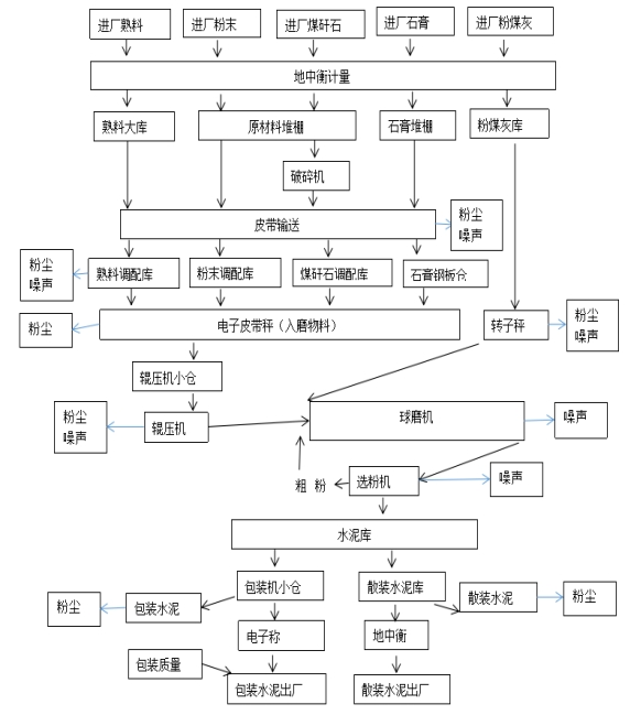 公司产品的主要生产工艺为水泥粉磨生产线。主要生产工艺流程如下所示:
