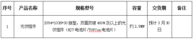 1、招标物资信息:双玻光伏组件。