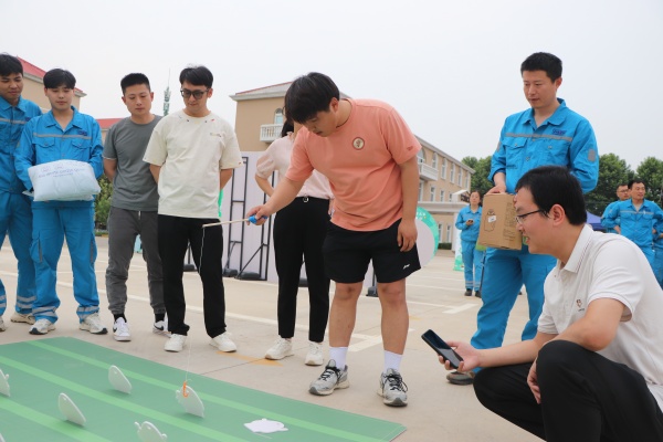 套圈游戏区排起长队,员工们手拿套圈跃跃欲试,期待套住心仪的奖品。
