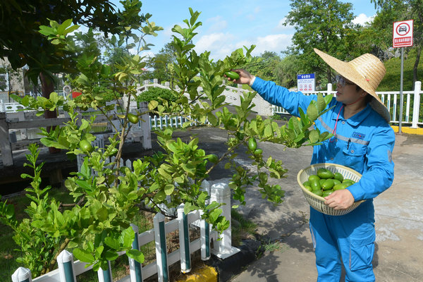 “刚从岗位下来喝上一口,又甜又解渴!”接过冰凉饮品的一线员工,脸上漾开满足的笑容。公司丰收的水果除了制作特色清凉饮品,还供应职工食堂,为员工果盘增添新鲜品类。从前期丰收的荔枝、芒果、西瓜,到如今持续供应的龙眼、柠檬,再到长势喜人的菠萝蜜、香蕉、杨桃、石榴、释迦……源源不断的“厂区鲜果”让员工们时刻感受到生态绿化带来的实惠。