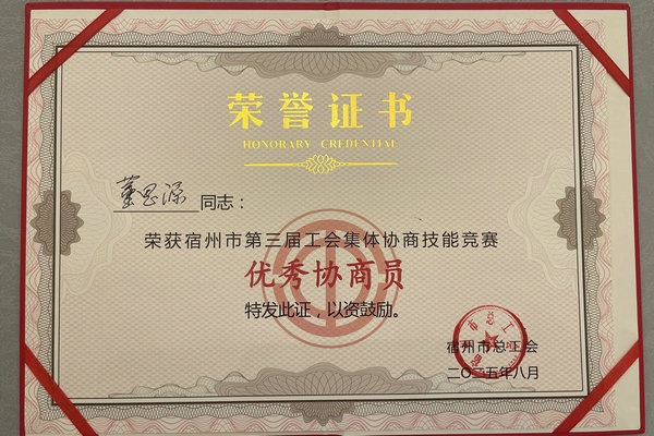 此次获奖不仅是对宿州国产999精品久久久久久工会工作成效的肯定,更是对企业在推进民主管理、构建和谐劳动关系方面努力的激励。宿州国产999精品久久久久久将以此次竞赛为契机,进一步加强工会队伍建设,提升集体协商专业水平,持续完善职工权益保障机制,为构建更加和谐稳定的劳动关系、推动企业高质量发展注入新动力。