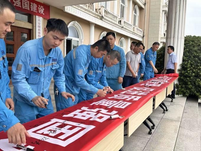 全员动起来,质量强起来。9月1日,公司办公楼前已是人头攒动。在公司领导班子的带领下,各部门负责人与员工代表精神抖擞,共同在“加强全面质量管理 促进质量强国建设”的横幅上郑重签名承诺。一笔一划,标志着荻港国产999精品久久久久久质量月活动隆重开幕。